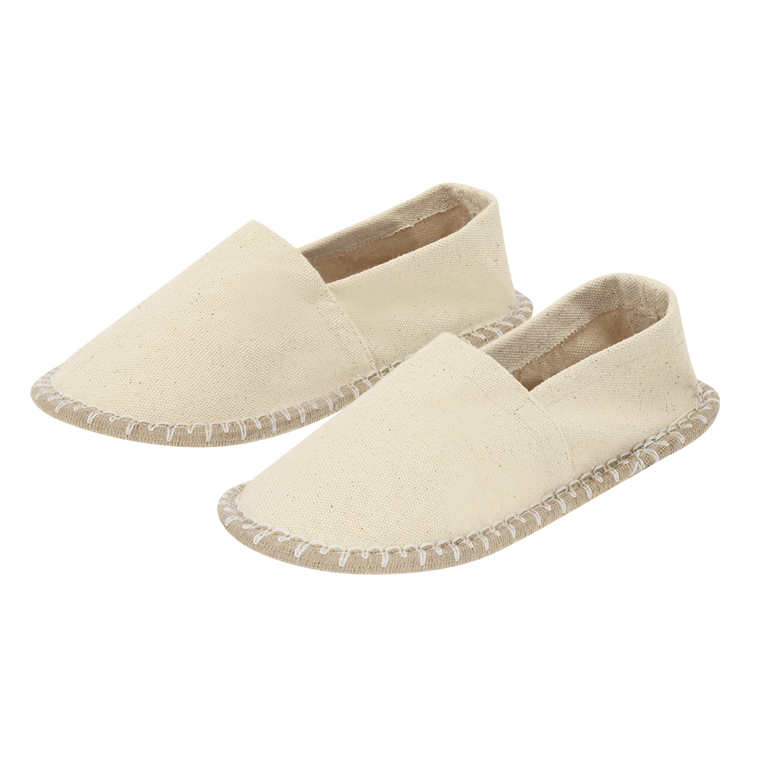 Alpargatas confeccionadas en algodón, ideales para un look fresco y cómodo. Con costuras color natural, incorporan suela semirrígida de poliéster. Incluyen base con puntos antideslizantes.