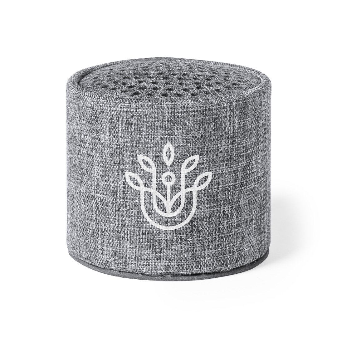 Compacto altavoz de línea nature y conexión Bluetooth 5.0. Carcasa fabricada en poliéster RPET, elaborado a partir de plástico reciclado, para así fomentar la reutilización de residuos plásticos y ayudar a la sostenibilidad del planeta. 3W de potencia, compatible con iOS y Android. Incluye cable de carga micro USB y base antideslizante. Presentado en atractiva caja de diseño eco. Con distintivo RPET sobre el artículo.