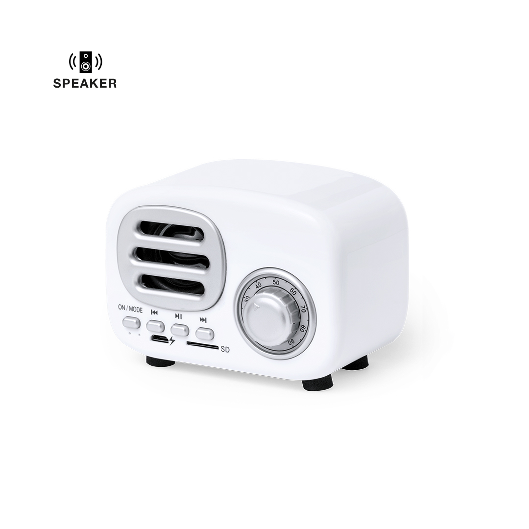 Compacto altavoz con estilo vintage en forma de radio de época y 3W de potencia. Con conexión Bluetooth para disfrutar de la libertad inalámbrica, reproduciendo la música y aportando estilo al mismo tiempo. Con indicadores luminosos, ranura para tarjetas Micro SD de hasta 64 GB y batería de 500 mAh. Presentado en atractiva caja de diseño kraft, con manual de instrucciones en español e inglés.