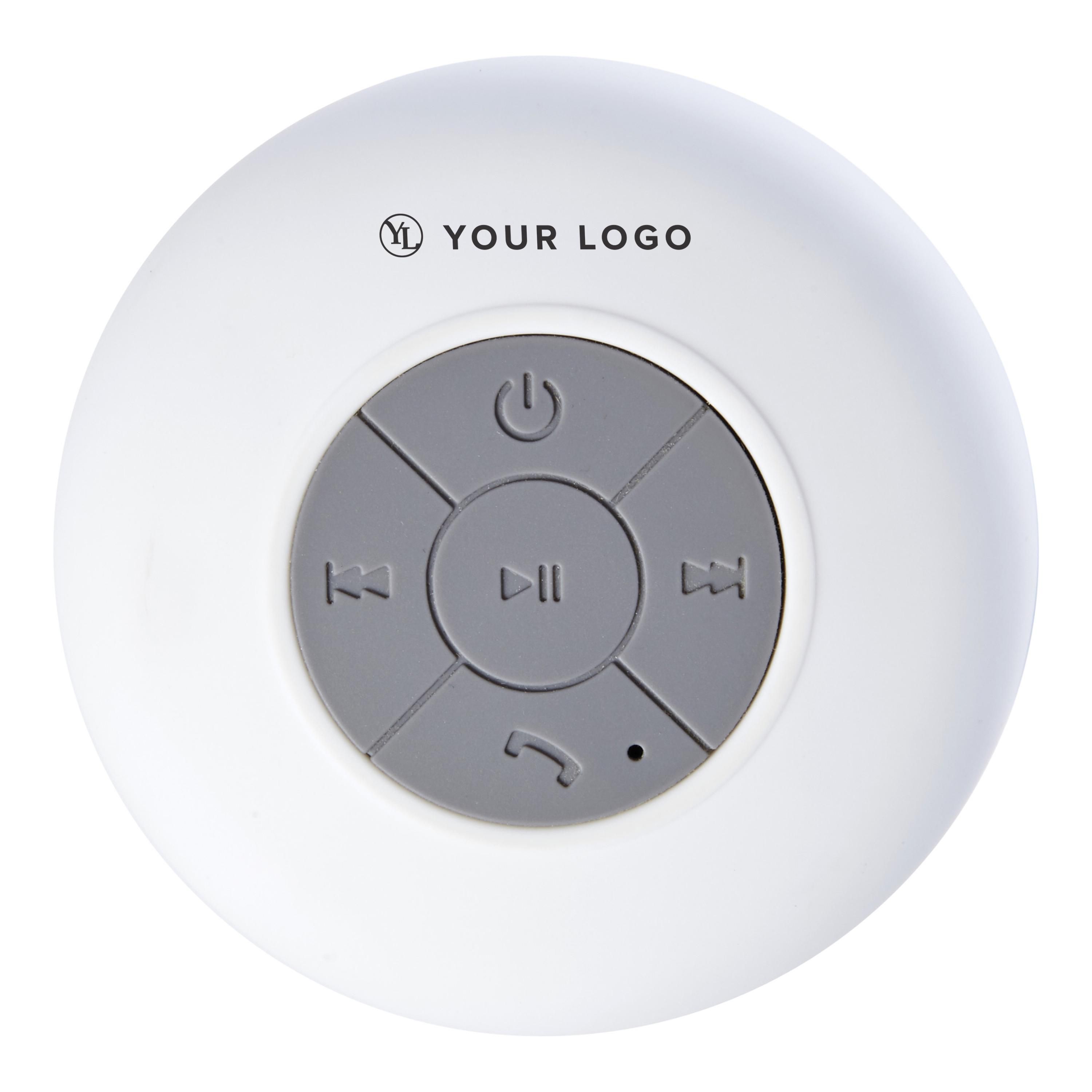 Altavoz inalámbrico de plástico engomado de 2W. Resistente al agua. Perfecto para responder llamadas en manos libres o escuchar música en la ducha. Con ventosa para colocarlo en superficies lisas. Autonomía 2h.