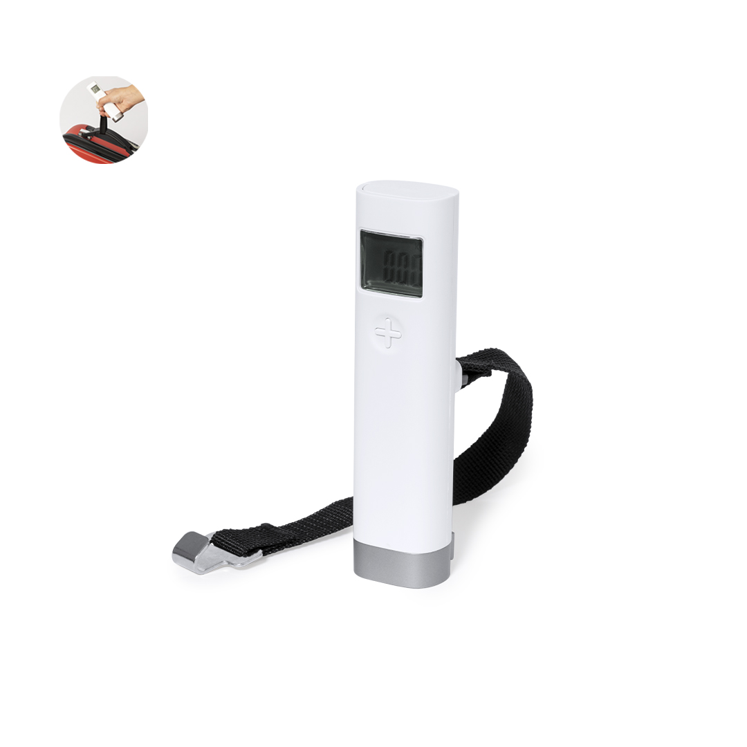 Ligera y práctica báscula digital para equipaje. Con pantalla digital y capacidad de hasta 50kg de peso. Fácil de transportar y de enganchar a maletas, mochilas o bolsas gracias a su práctico gancho. Disponible manual de instrucciones en español e inglés. Alimentación a pilas (1 pila de botón incluida).