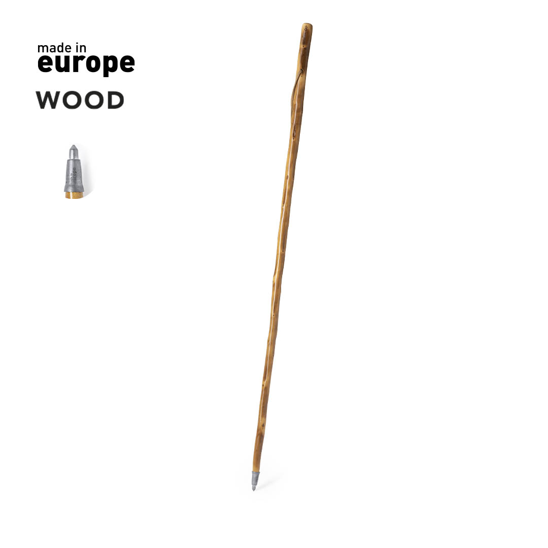Clásico bastón para caminar, fabricado en resistente y flexible madera natural. Con punta metálica y distintivo Made In Europe.
