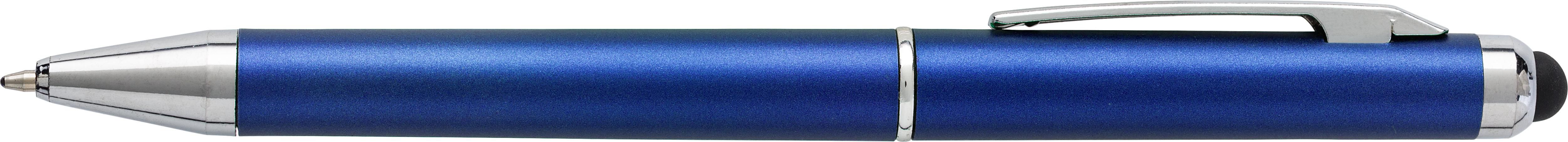 Bolígrafo giratorio de ABS con puntero táctil. El cuerpo es de color, punta y anillas plateadas y clip metálico. Tinta azul.