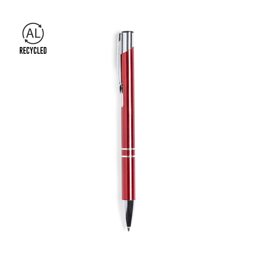 Bolígrafo eco-friendly fabricado en aluminio reciclado. De mecanismo pulsador, con cuerpo disponible en variada gama de colores metalizados y accesorios en cromado. Con clip metálico y distintivo aluminio reciclado en la parte superior del bolígrafo. Cartucho jumbo y tinta azul.El origen del aluminio reciclado se encuentra en la reutilización casi infinita de uno de los materiales con mayor potencial de reciclabilidad sin perder sus propiedades. Esta característica lo convierte en un material eco-friendly de origen reciclado, fácilmente reciclable y de cuyos procesos de tratamiento y desechos para la obtención del material se pueden obtener nuevos recursos reutilizables, consumiendo menos energía en su fabricación, entre otros factores de sostenibilidad. Certificación GRS (Global Recycled Standard / Estándar de Reciclaje Global), que garantiza el origen reciclado del material usado para fabricar el producto.