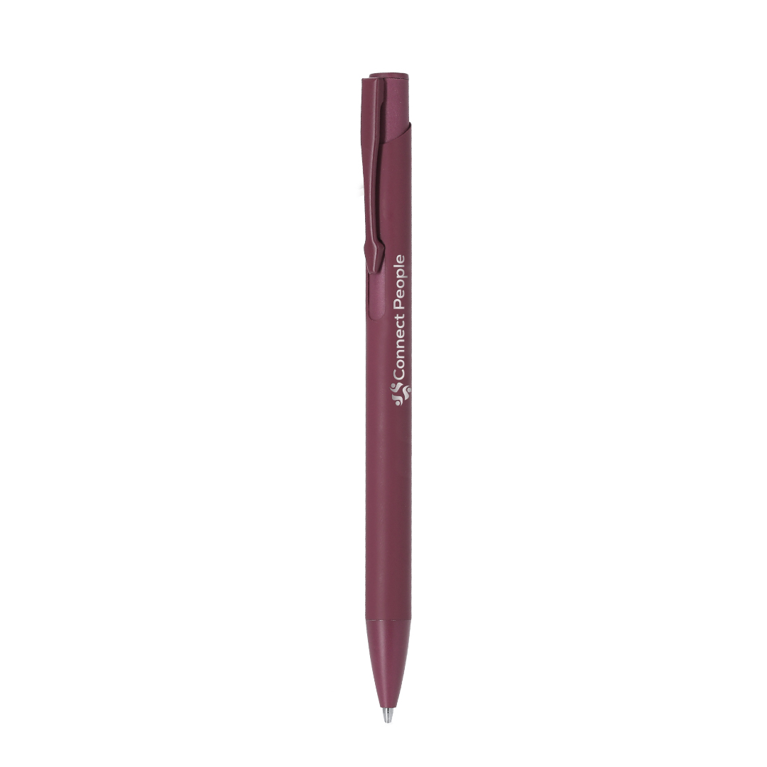 Elegante bolígrafo de aluminio con mecanismo pulsador. Cuerpo y clip en resistente aluminio de acabado mate, con cartucho jumbo y en tinta azul. Especial para marcaje en láser.