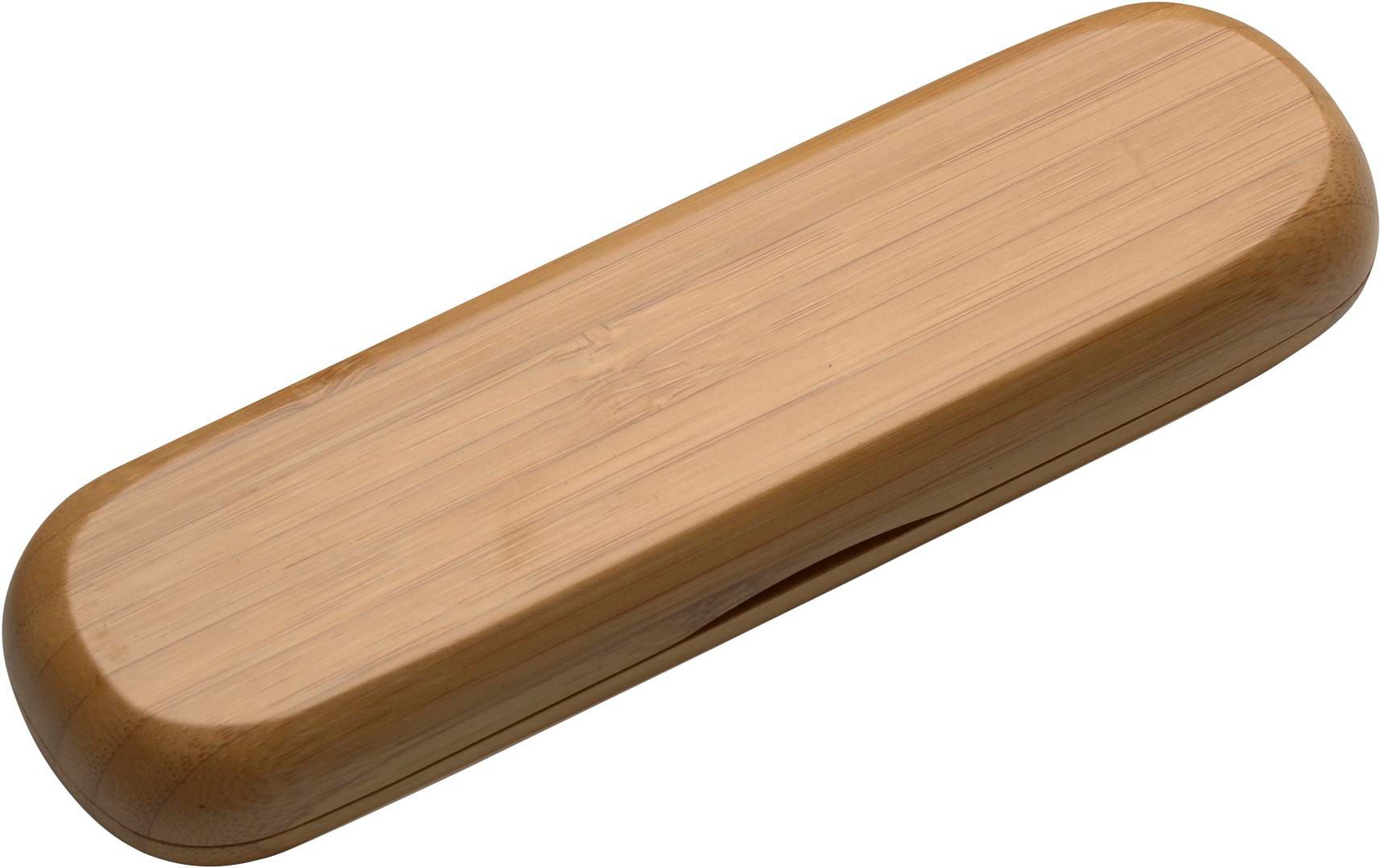 Set de bolígrafo y roller de madera de bambú con acabados de metal. Tinta azul. Presentado en un estuche de madera de haya.