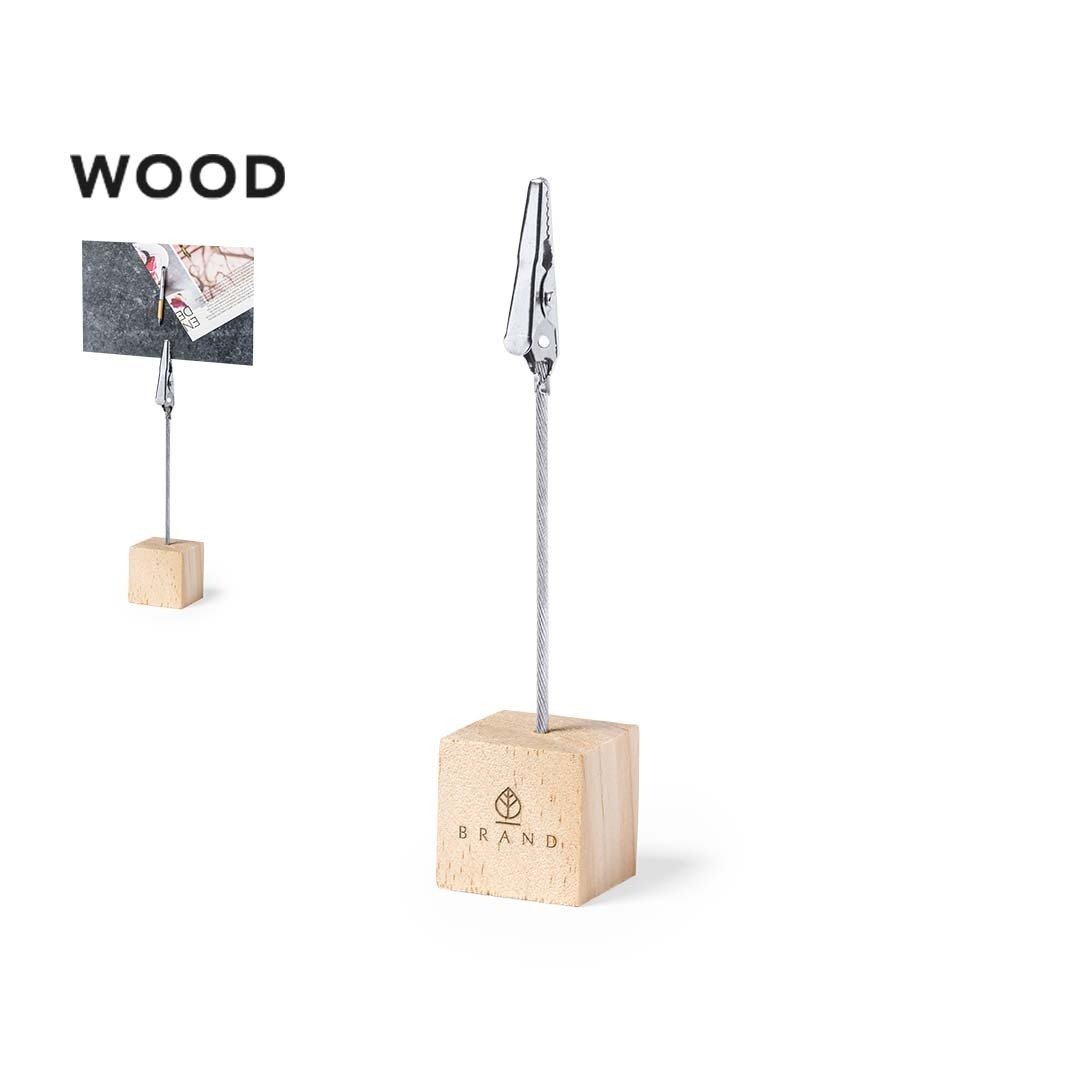 Clip de línea nature, con resistente base fabricada en madera de pino natural. Con poste y pinza metálicos para una firme sujeción de tarjetas, notas, fotos…