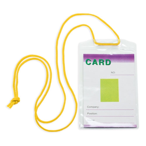 Identificador transparente, Cordón de 110 cm.Medida de la tarjeta: 10,1 x 6,7 cm.