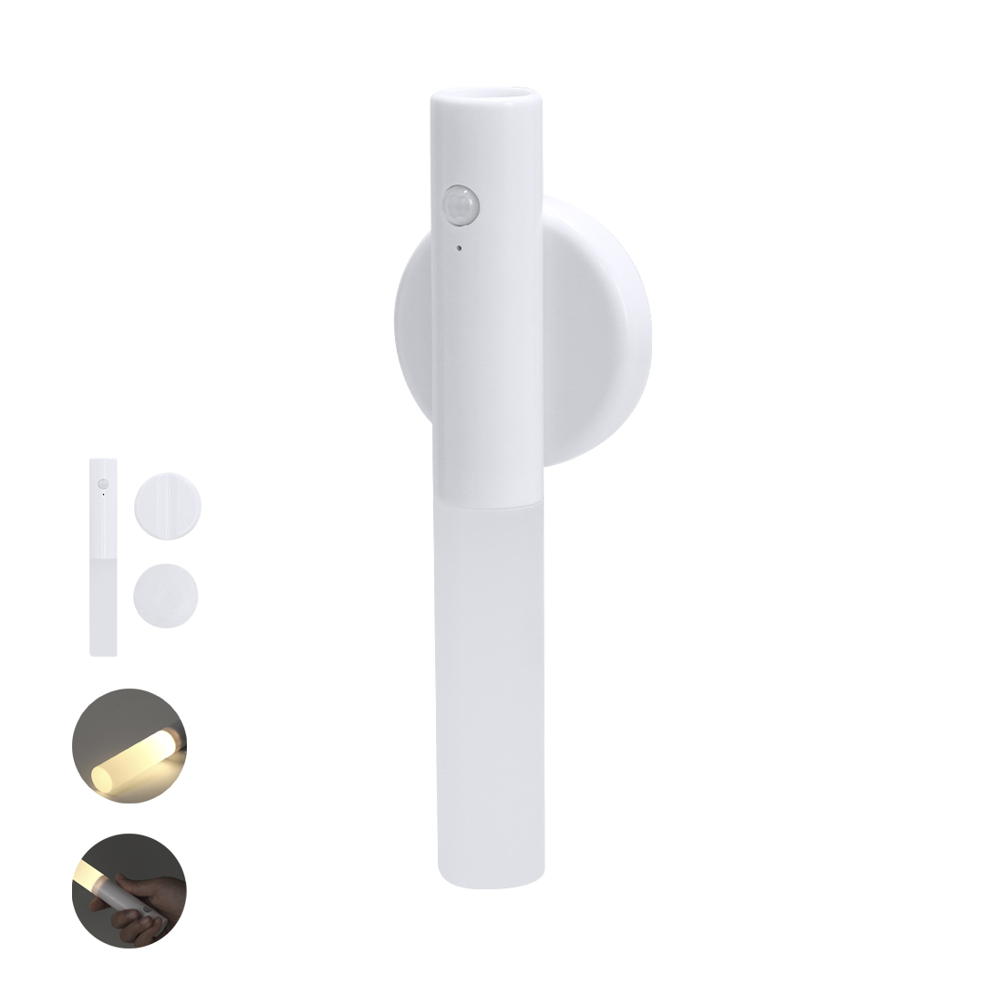 Linterna de emergencia LED con resistente cuerpo y base magnética y adhesiva en ABS. Incluye pulsador en el frontal de la linterna y prácticos imanes en la parte trasera. Dispone de un sensor de movimiento y luz indicadora con un rango de detección de 2-3 m. Alimentación con batería recargable con capacidad de 300mAh. Incluye cable de carga USB-A a USB-C en el mismo color.