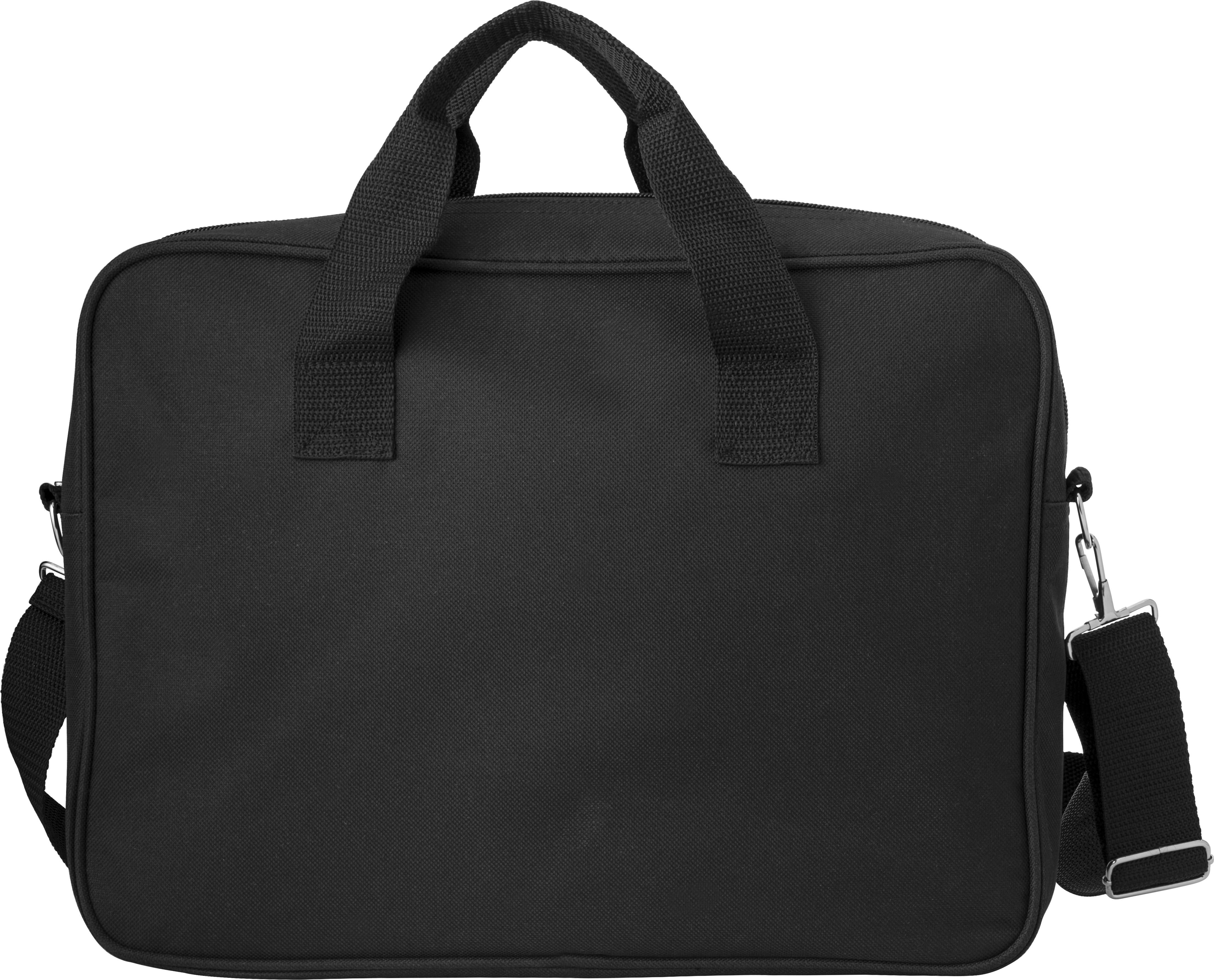 Maletín de poliéster (600 D) para portátil de 14'', bolsillo en la parte frontal con cierre de cremallera en vertical. Gran compartimento acolchado con cierre cremallera. Dos asas y correa ajustable.