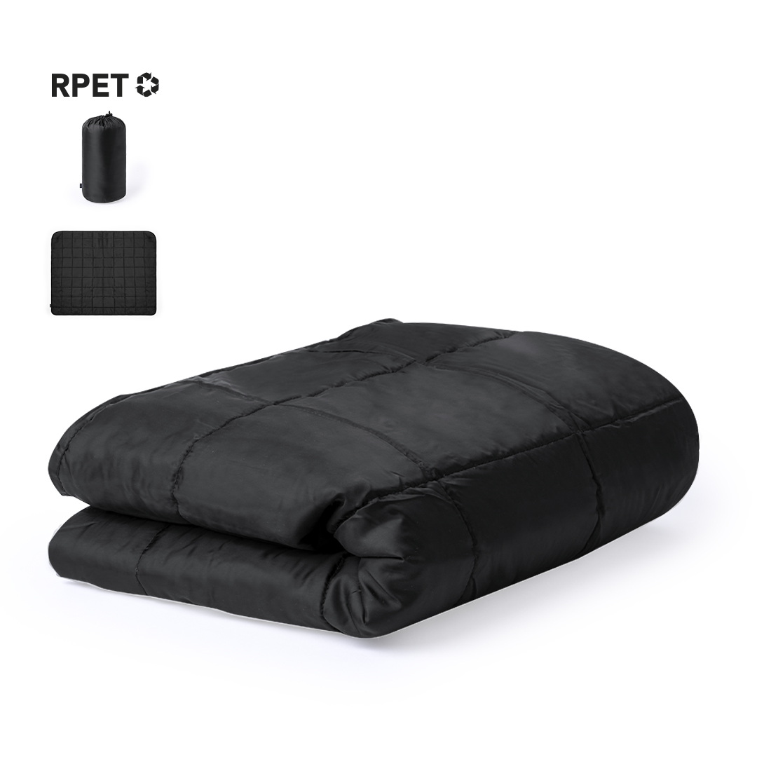 Manta de picnic premium fabricada en resistente poliéster 190T RPET y acabado en negro. Plegable, con funda ajustable de autocierre en poliéster 190T RPET. En tamaño 120x150 cm, de fácil plegado y tamaño compacto, con logotipo RPET.El material RPET se elabora a partir de plástico reciclado, para así fomentar la reutilización de residuos plásticos y ayudar a la sostenibilidad del planeta.