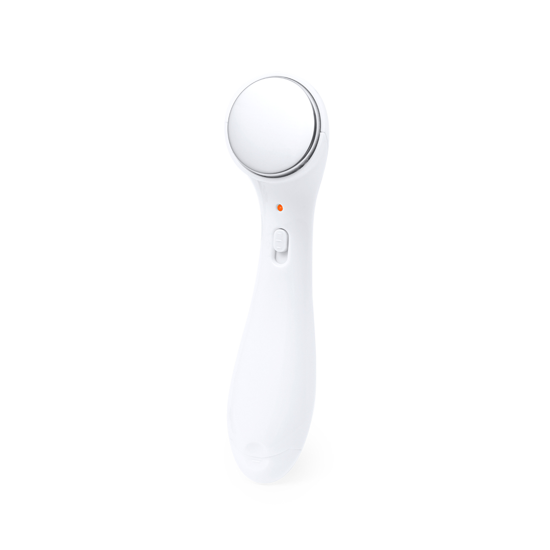 Limpiador facial eléctrico. Eficaz instrumento de belleza para limpiar en profundidad la piel del rostro mediante la vibración, provocando placentero masaje con su base plana y ayudando a abrir los poros para una mejor higienización. Con posibilidad de escoger entre corrientes positivas o negativas, funciona con pila de botón (incluida). Presentado en una caja de diseño kraft.