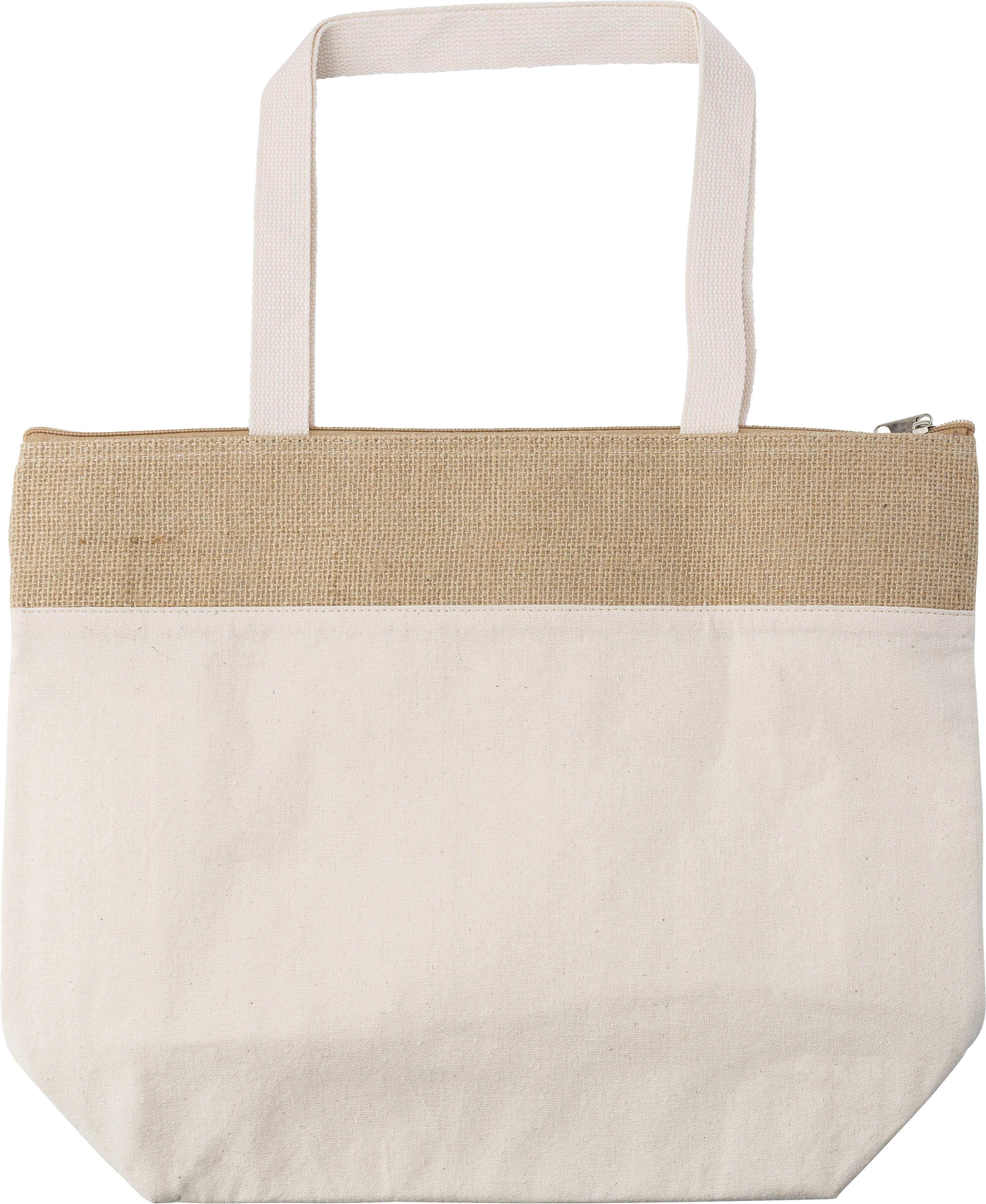 Bolsa isotérmica de yute y algodón (220 g/m2) con interior de lámina de aluminio y espuma de 2 mm.