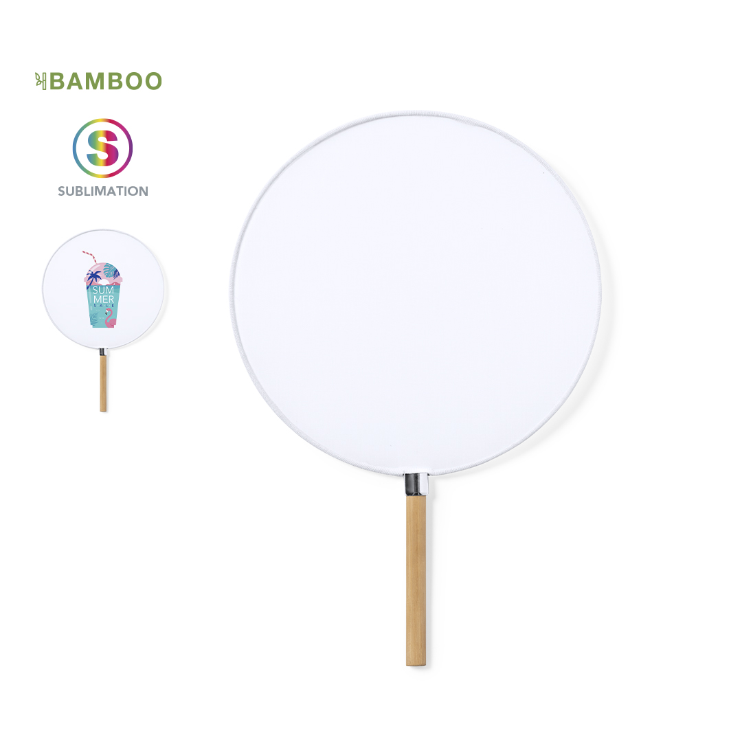 Elegante Pai Pai fabricado en resistente poliéster especial para sublimación. Con mango en bambú y detalle en cromado.