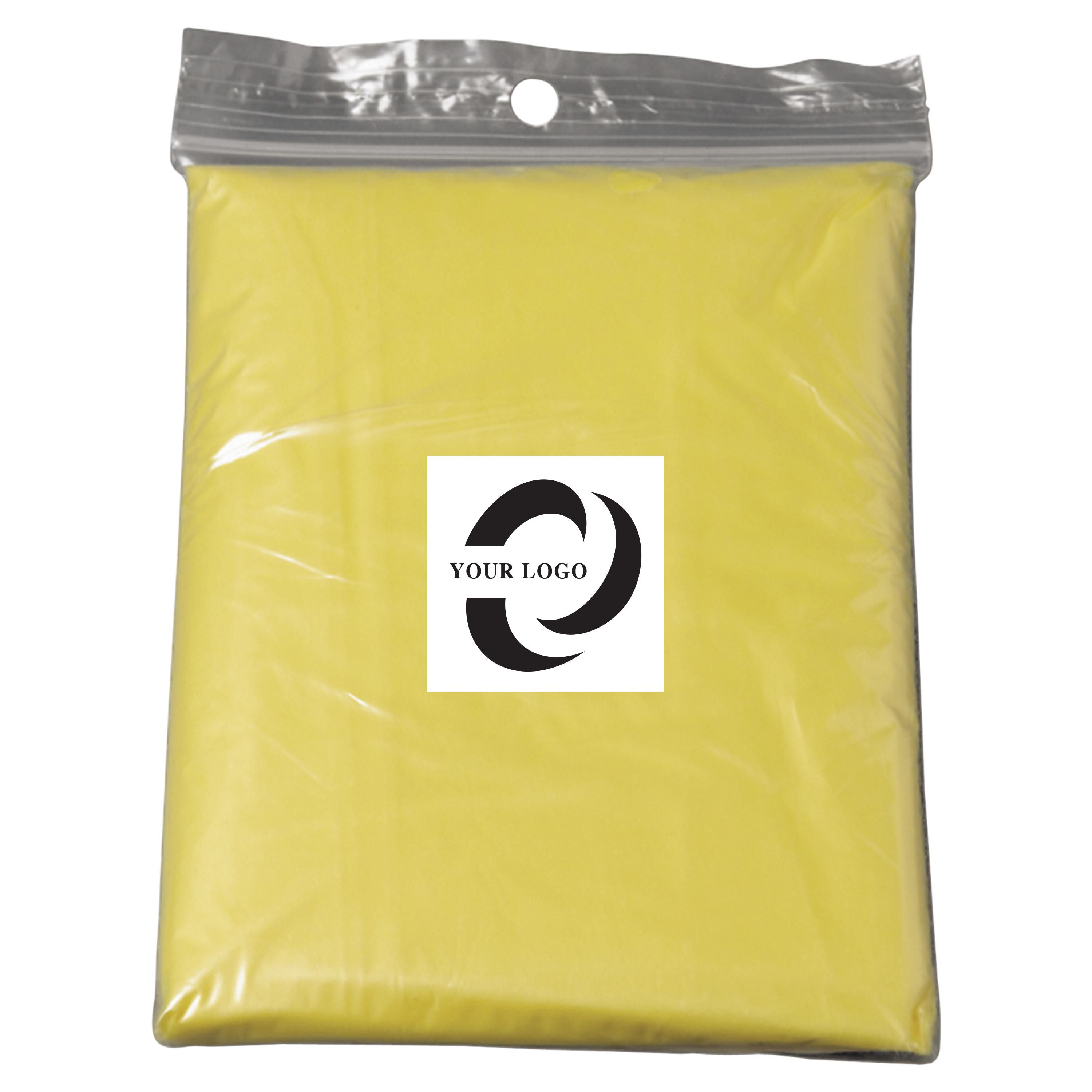 Poncho de PE transparente, plegado en una bolsa de plástico.