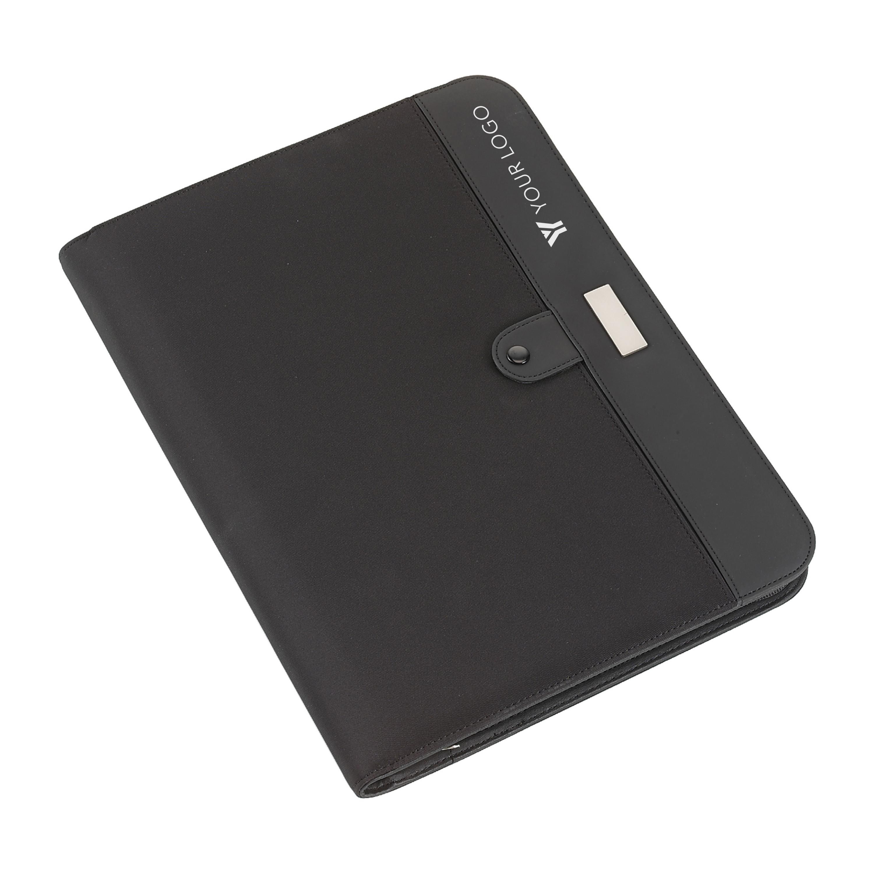 CarPETa de congresos (aprox. A4) de microfibra, con bloc de 20 hojas lineadas, calculadora dual y cierre cremallera. 1 pila botón incluida. Bolígrafos no incluidos.