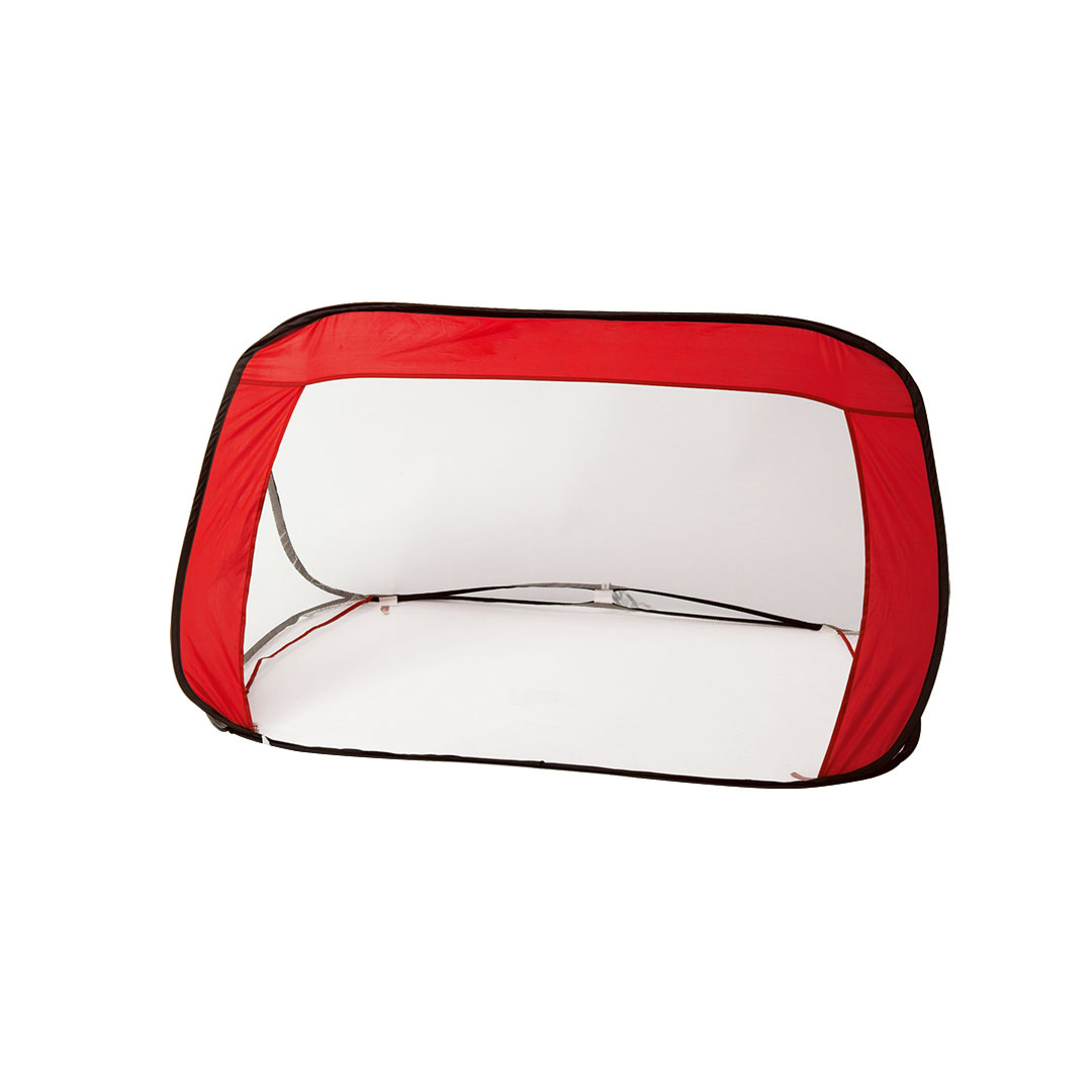 Divertida portería plegable de vivos colores en combinación de resistente nylon y tejido de redecilla. Con cómoda bolsa de transporte con asas.