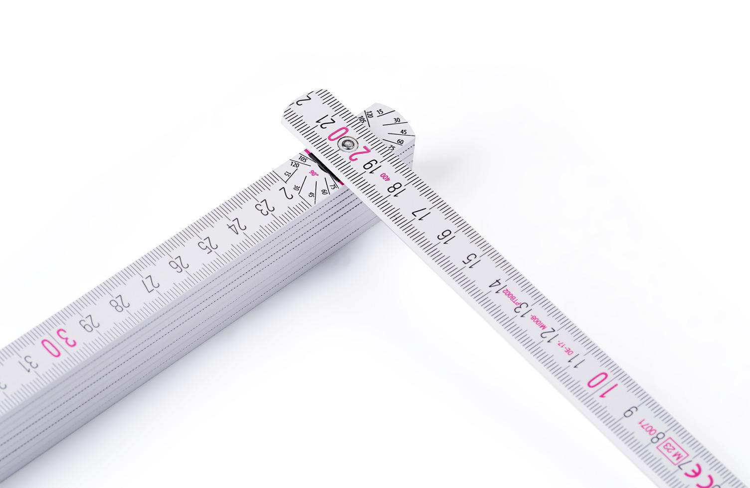 Regla plegable Stabila de madera de 2 metros y escala en cm. Cuenta con un esquema de ángulo integrado y una función de regla. Clase de precisión 3.