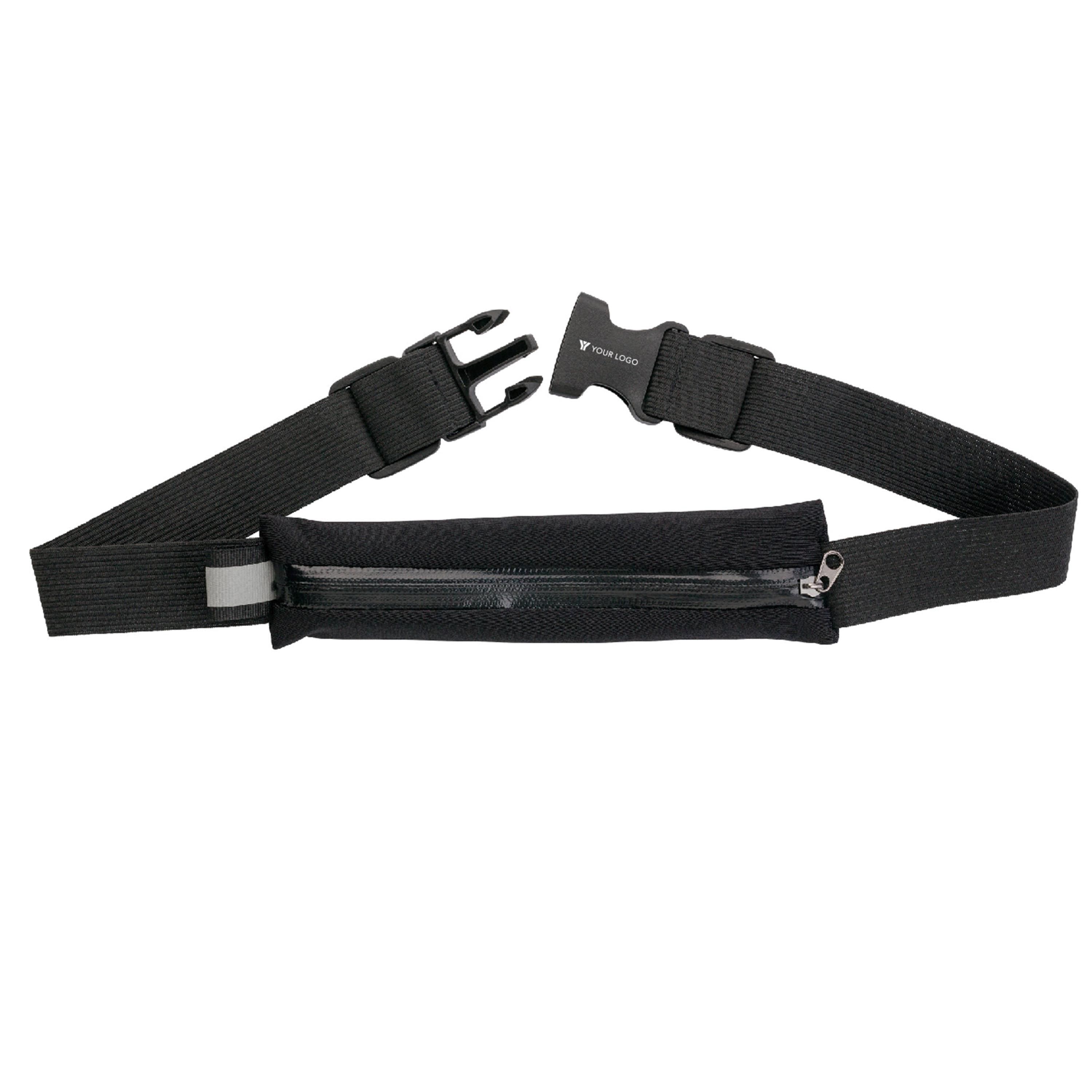 Riñonera de neopreno con cremallera y banda elástica ajustable en ambos lados (2x27cm.) y cierre de plástico negro. El interior de la bolsa está revestido para que sea repelente al agua.