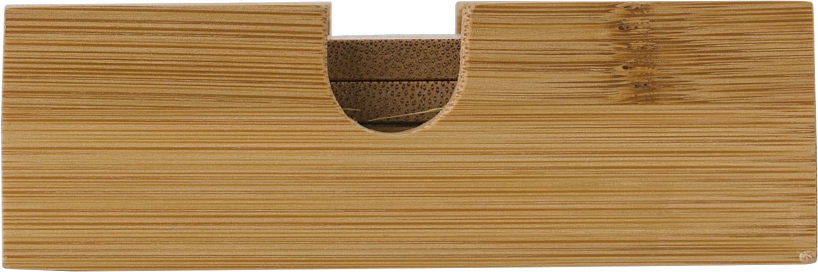 Soporte de bambú con 4 posavasos de bambú. Presentado en una caja de regalo.