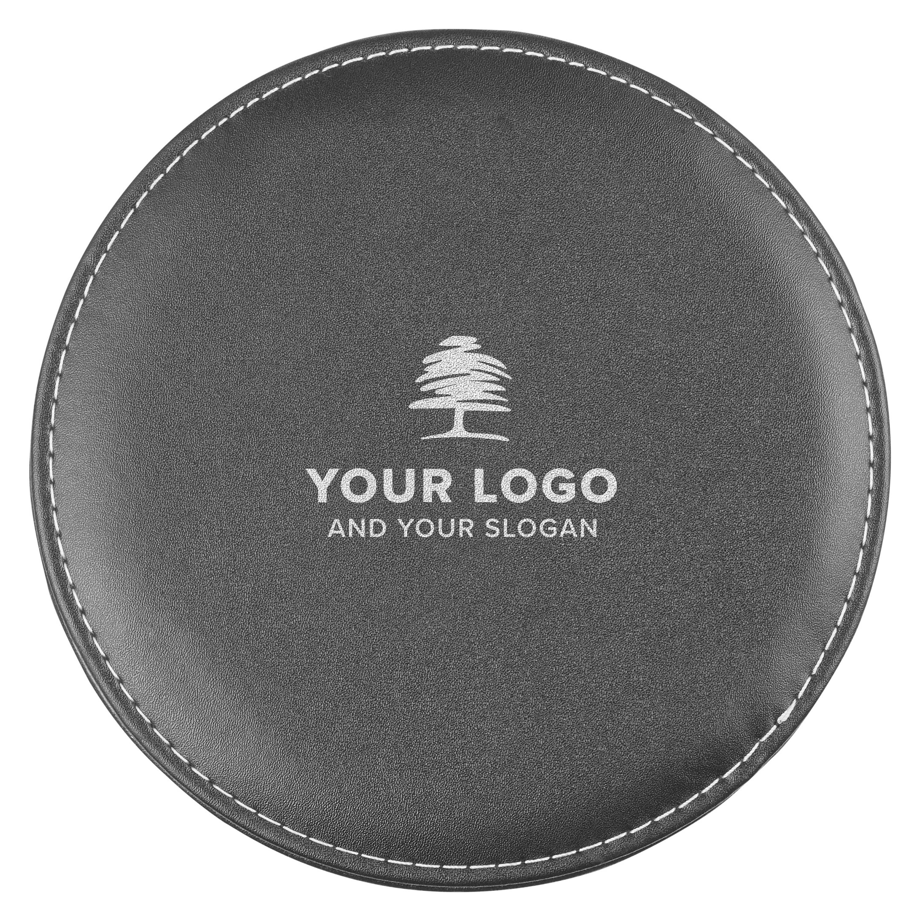 Set de vino en estuche circular con cuatro accesorios de acero inoxidable para vino.