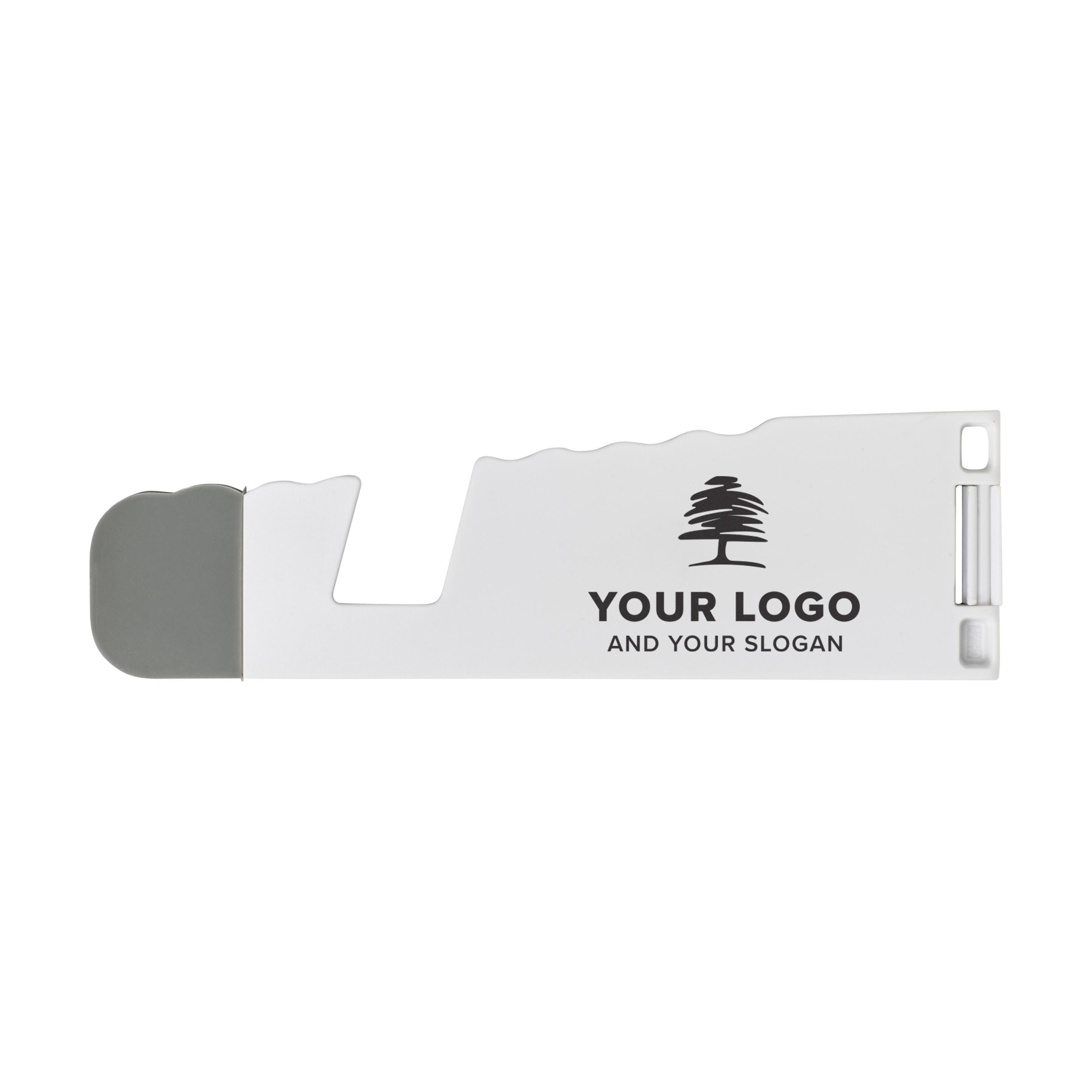 Soporte plegable de ABS con extremos de silicona, para teléfono o tablet.