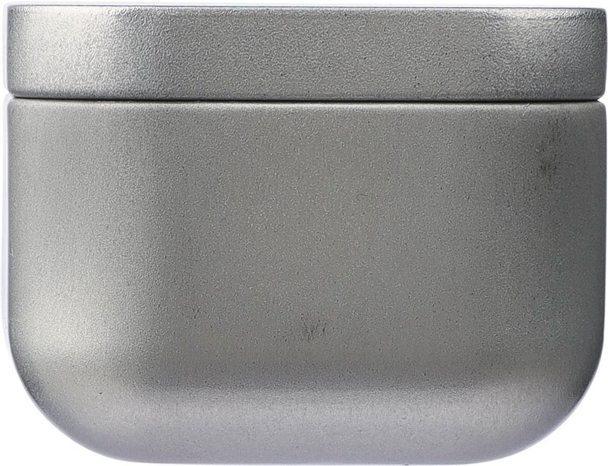 Vela en un tarro de metal con tapa, aroma a vainilla. Contiene 40 gramos de cera. Tiempo de combustión aprox. 10 horas. Presentada en una caja de cartón marrón.