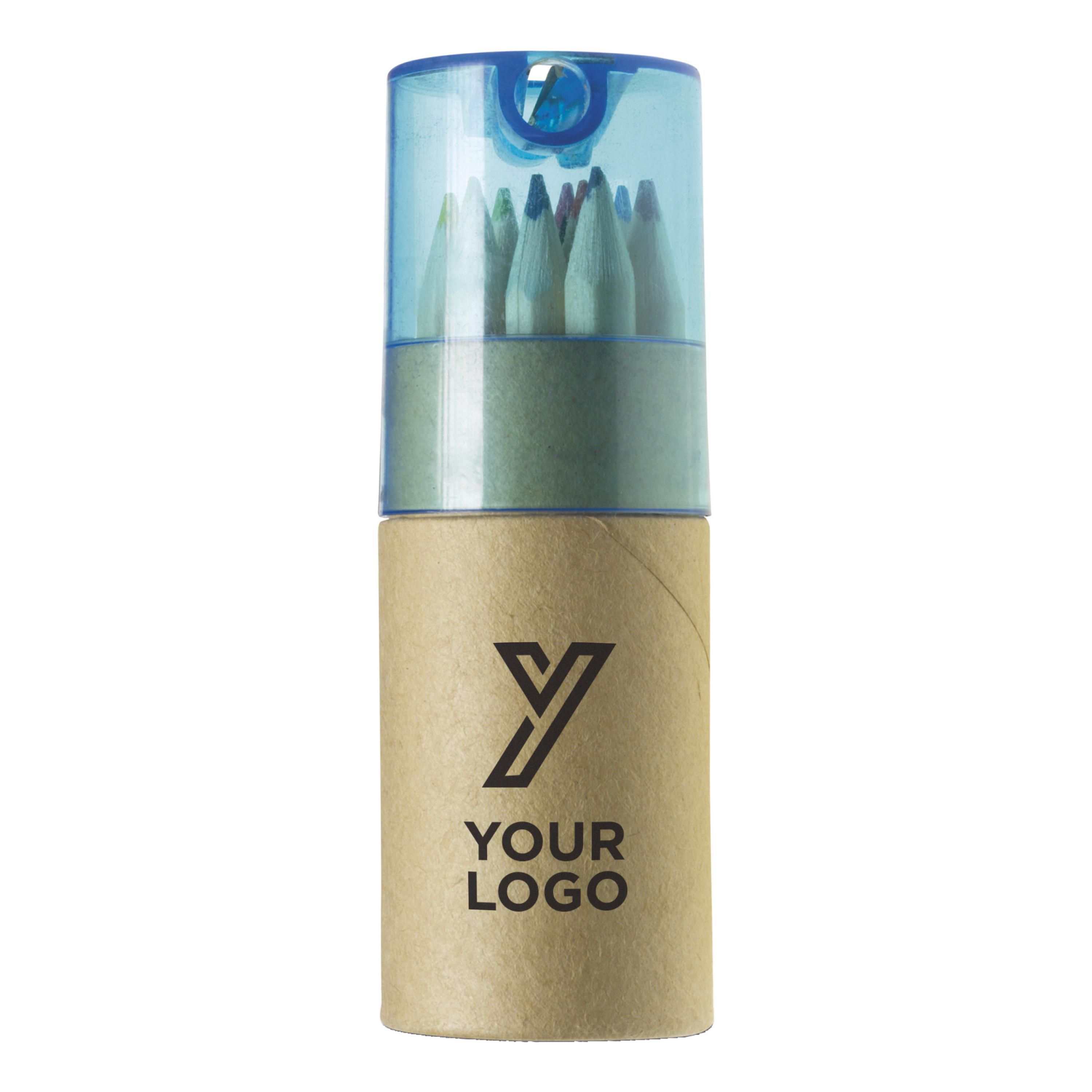 Tubo de cartón con 12 lápices de color y sacapuntas en la tapa de ABS.